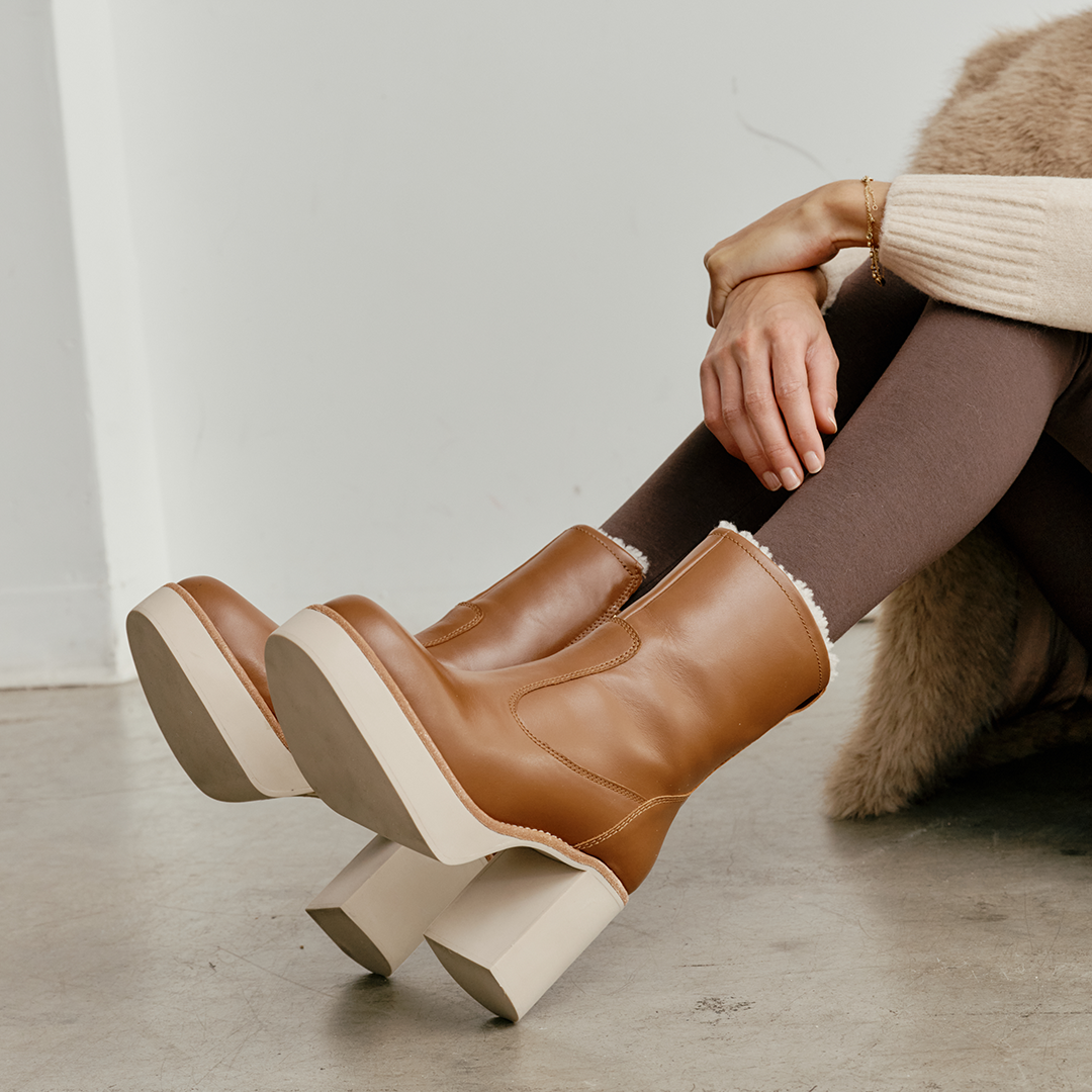 Durable and sturdy boot fully lined with warm sherpa / shearling on the inside. Perfect for harsher weather like snow, rain and frost.