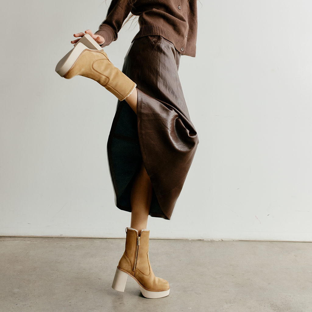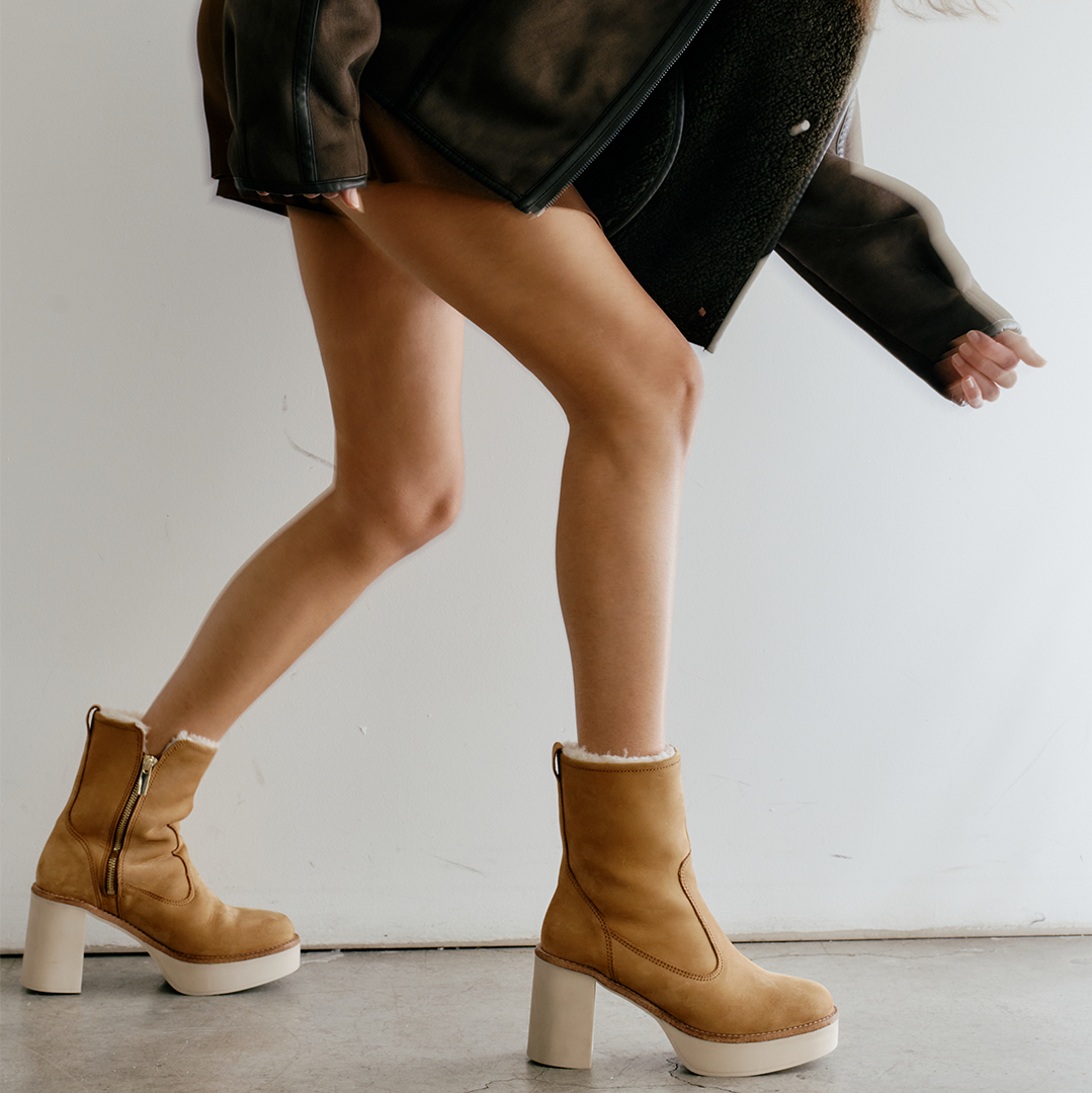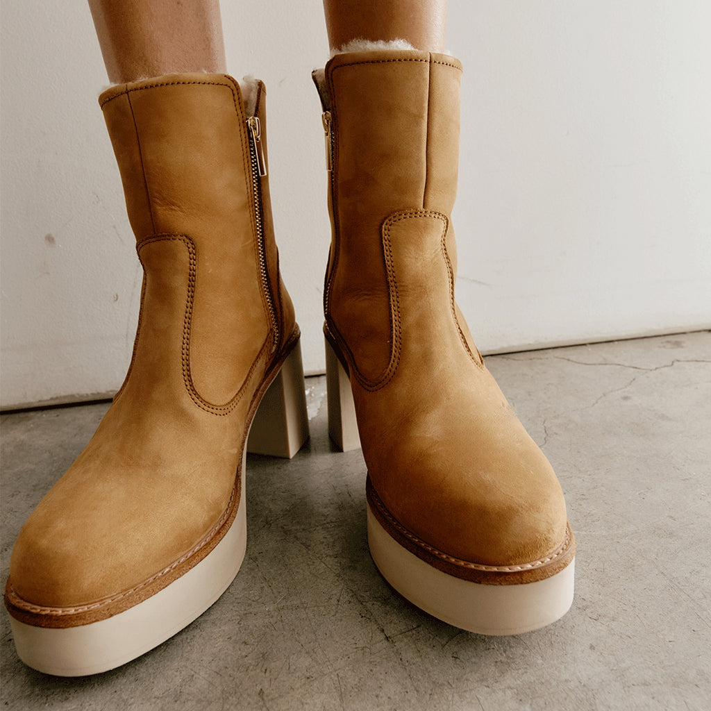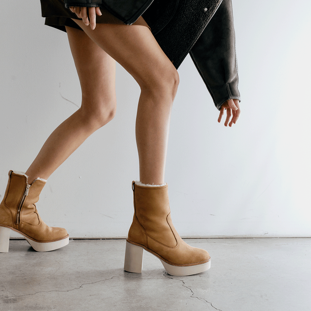 - Nubuck leather with shearling lining