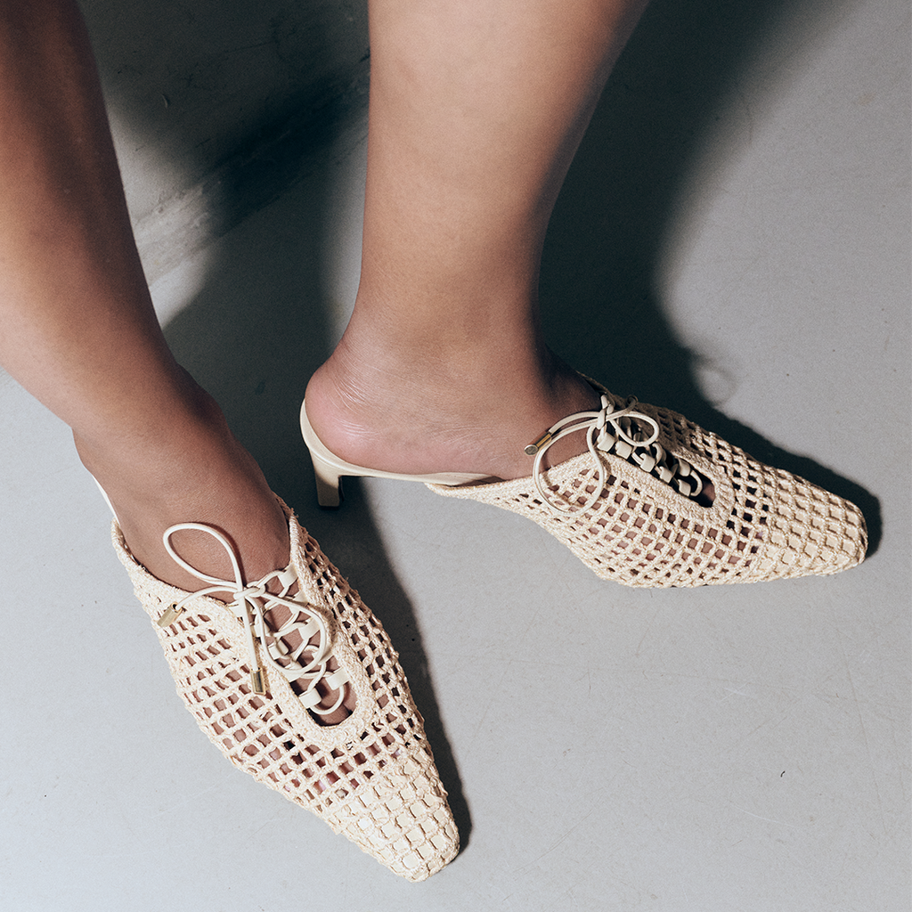 The Bruna Heel is a bold, mid-heeled raffia sandal that exudes artisan elegance and modern femininity. Standing at 3 inches (76mm), this handcrafted style is made with a breathable woven raffia upper and a leather inner structure that offers both form and function.
