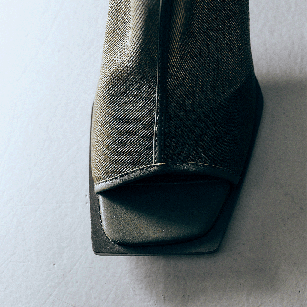 Effortlessly fluid. The Onyx Mesh Heel features a sleek, stretchable design inspired by the strength and elegance of the onyx stone. Combining refined structure with exceptional adaptability, its semi-sheer mesh mirrors the stone’s smooth translucency, while bold Nappa leather accents add a sculptural, striking finish.
